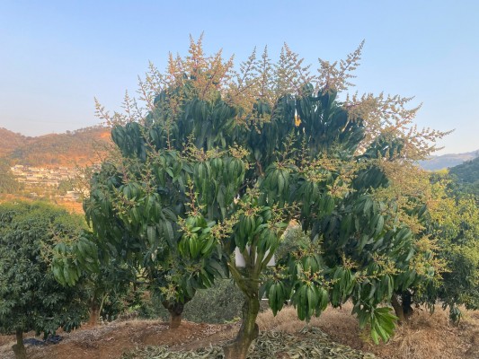 花满树冠,一株芒果树就是一朵巨型伞状花。