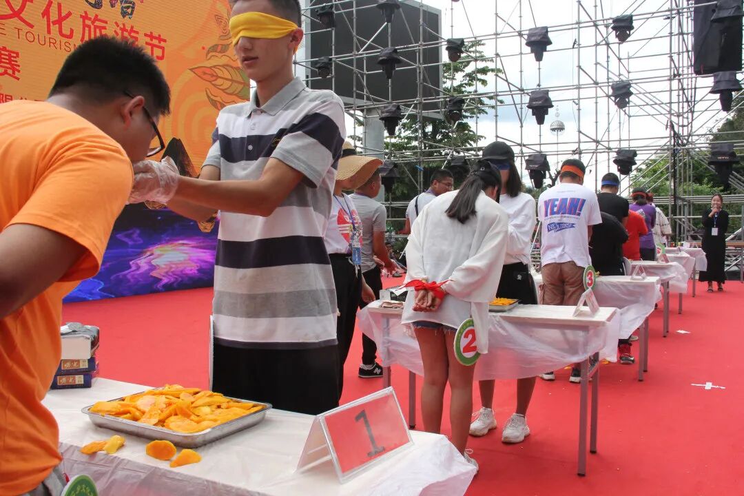 随着主持人一声令下,“吃芒果比赛”正式开始,参赛者在欢快的音乐声和观众的呐喊声中,使出浑身解数,奋力用速度挑战自己的肚量。永德芒果节中的“吃芒果比赛”让外来宾客既品尝到美味的永德芒果,也感受到永德人民的热情好客。(郭建军 摄)