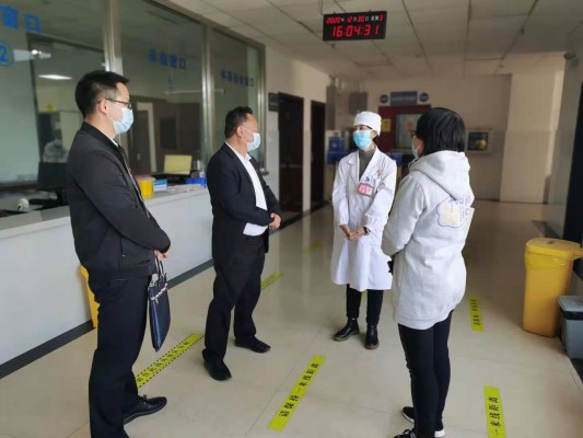 第一监督检查组到县人民医院督查核酸检测工作是否到位。(何跃群 摄)