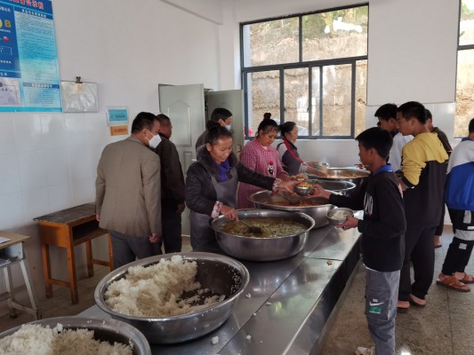 第二监督检查组到乡镇中学食堂对餐饮情况进行督查。(蒋丽 摄)