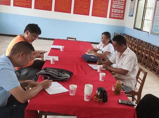 第三巡察组与勐底农场管委会社区干部座谈,了解各项惠民政策落实情况及群众反映的突出问题。(郭天芹 摄)