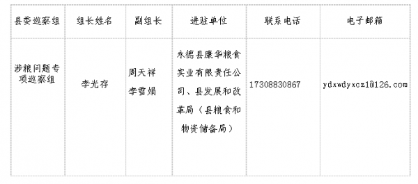 十四届县委第二轮巡察(涉粮问题专项巡察)进驻情况及联系方式一览表