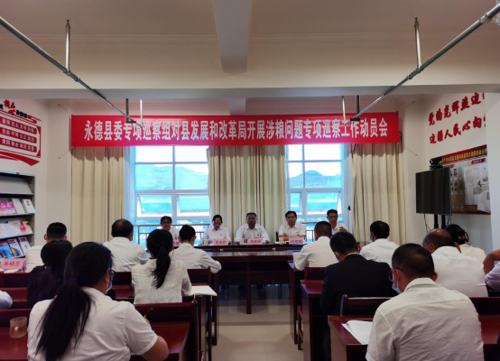 会上,县委涉粮问题专项巡察组组长李光存作了动员讲话,对做好专项巡察工作提出要求;永德县康华粮食实业有限责任公司主要负责人吴廷斌,县发展和改革局(县粮食和物资储备局)局长高源朝主持会议并表态发言。