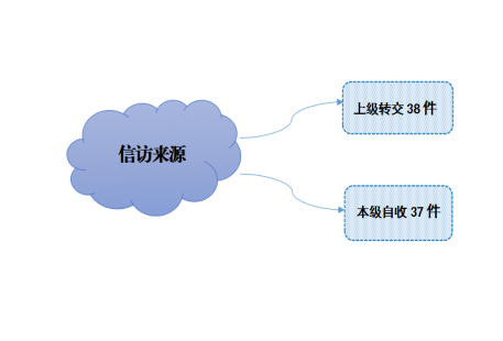 从信访来源看,上级转办38件,占50.67%;自收37件,占49.33%。