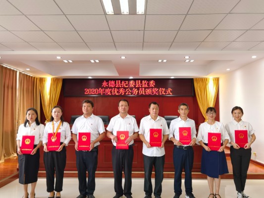 9月8日,永德县纪委县监委举行2020年度优秀公务员颁奖仪式,县纪委县监委有关负责人为年度优秀公务员和记三等功人员颁发奖章和荣誉证书。