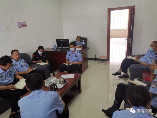 县公安局局领导和局直19个警种部门、12个派出所及4个疫情防控检查站(点)、3个疫情留观点共450余名领导干部警辅人员因地制宜采取集中观看与个人自行观看相结合的方式收看警示教育片,并以召开会议或者座谈等形式组织开展讨论交流。图为治安大队在观后组织开展讨论交流。