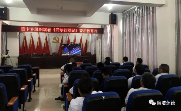 班卡乡主要领导带头,组织班子成员和干部职工集中观看警示教育片。
