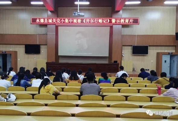 县城关完小组织教职员工返校集中观看警示教育片。