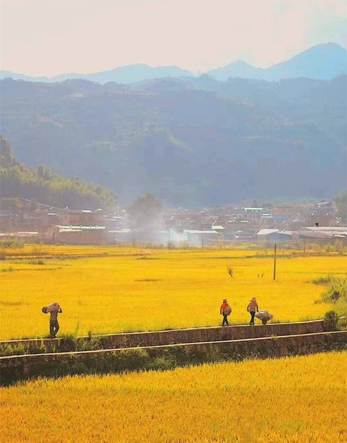 春去秋来,那一片在群山间橄榄色的稻田,见证的是耕耘和收获的永恒定理。(周永建 摄)