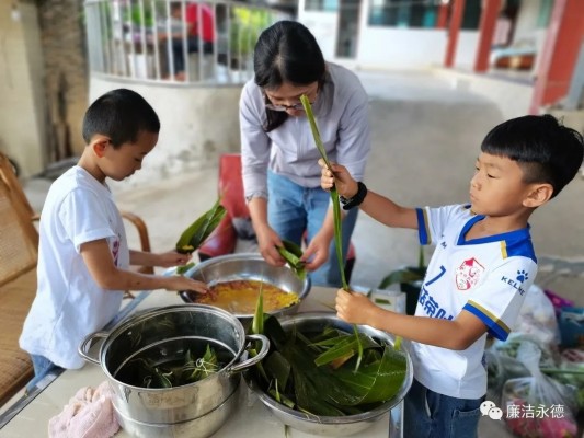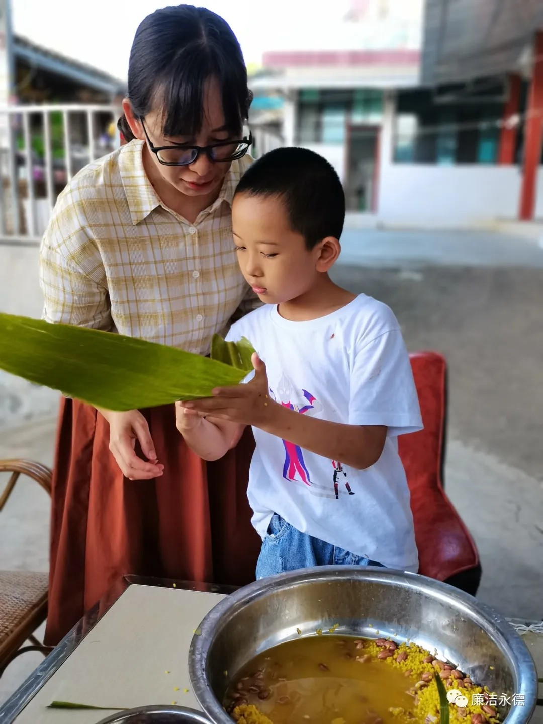 让孩子自己动手包粽子,直观了解和体验端午节民俗,增强孩子对中华传统文化的认同感和自豪感。(李正丽 摄)