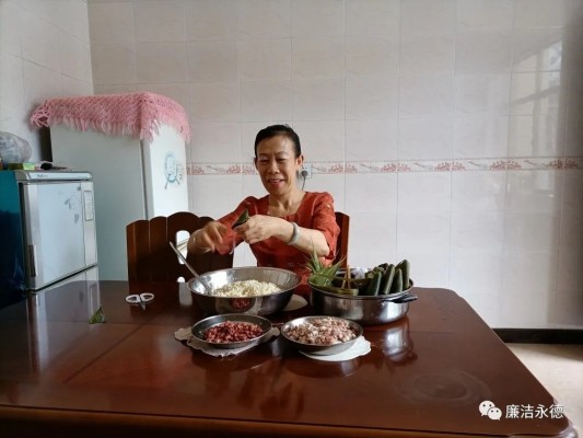 纪检监察干部们在棱角分明的粽子中深切感受爱国诗人屈原深深的家国情怀及“宁廉洁正直以自清”的清廉底线。(李盛德 摄)