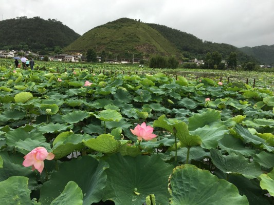 晶莹剔透的露珠还在荷叶上晃动,葱绿的荷叶托出朵朵芙蓉,正是“接天莲叶无穷碧,映日荷花别样红。”(罗剑飞 摄)