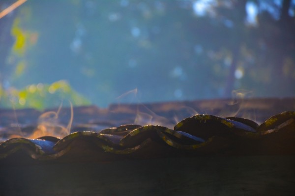 夏雨滂沱来去无踪,阳光穿过青翠绿叶洒下熹微碎光,氤氲水汽萦绕着古朴的农家青瓦。(郭丹阳 摄)