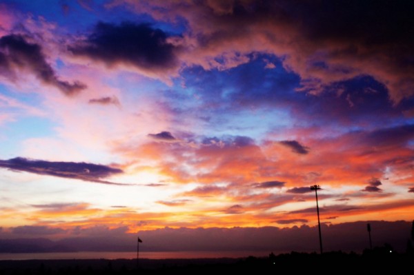 夕阳西下,晚霞烧红了天空,天气暖热、雨量丰沛、万物生长繁茂的盛夏时节如约而至。(郭丹阳 摄)
