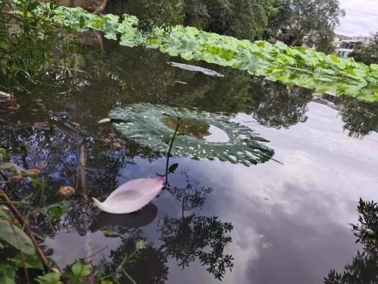 “水陆草木之花,可爱者甚蕃。晋陶渊明独爱菊。自李唐来,世人甚爱牡丹。予独爱莲之出淤泥而不染,濯清涟而不妖,中通外直,不蔓不枝,香远益清,亭亭净植,可远观而不可亵玩焉。”洁白的花瓣散落水中,犹如一叶扁舟,惊艳了池的寂静;晶莹剔透的雨滴,散落在荷叶上,似颗颗珍珠撒满玉盘。