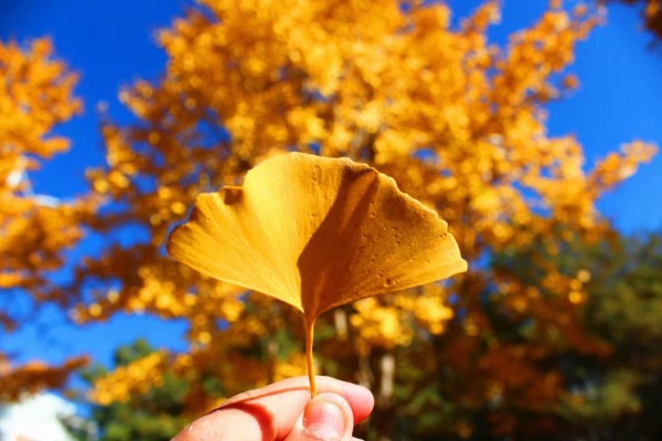 秋风吹过,秋叶纷纷,清凉的空气,金黄色的树叶,这是秋天独有的景色。
