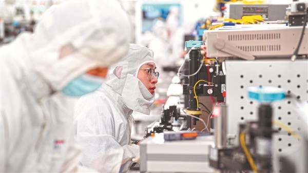 武汉东湖新技术开发区一家企业的工作人员在车间忙碌。 图片来源:视觉中国