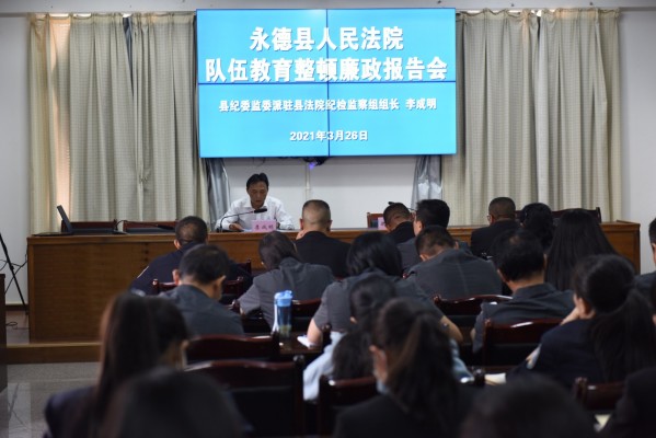 日前,在永德县司法行政队伍教育整顿警示教育大会上,永德县纪委监委派驻县司法局纪检监察组组长结合典型案例,为参会人员上了一堂深刻的廉政教育课,在思想上、政治上、组织上、作风上进一步纯洁司法行政队伍,筑牢政治忠诚,确保始终听党指挥、忠诚使命。