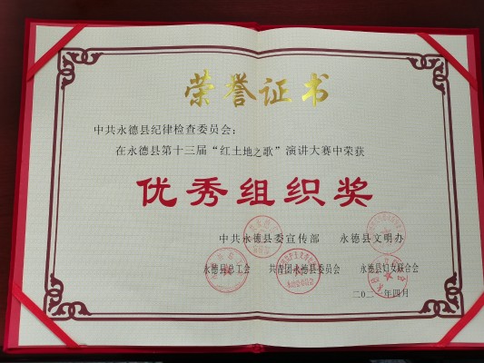 永德县纪委监委把组织参加此次演讲比赛作为加强思想道德建设、庆祝建党100周年的重要举措,作为培养锻炼年轻纪检监察干部的一种方式,参赛的干部既有工作经验丰富的青年骨干,也有刚刚加入纪检监察干部队伍的新人,他们都把演讲比赛作为展示自我、历练成长的平台,在日常工作任务繁重的情况下,加班加点认真进行准备。针对此次演讲比赛准备时间仓促、参赛人员演讲经验不足等情况,县纪委监委安排有演讲经验的纪检监察干部从文稿撰写、时间把控、语言表达、神情仪态、缓解紧张心理等方面对参赛人员进行精心指导,县纪委监委也荣获了“优秀组织奖”。