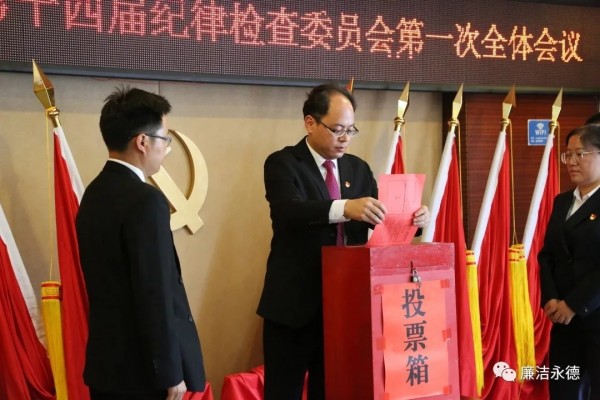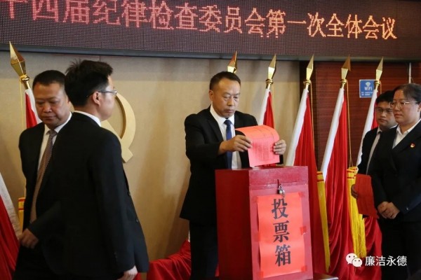 会议应到县纪委委员27名,实到27名,符合规定人数。会议以举手表决的方式通过《中国共产党永德县第十四届纪律检查委员会第一次全体会议选举办法》;通过监票人、计票人名单;通过中国共产党永德县第十四届纪律检查委员会常务委员会委员、书记、副书记候选人建议名单。